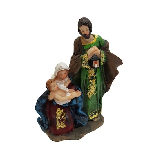 Material: Resina.Peso: 109grCores: Pele, Azul, Verde, ;Vermelho e Marrom;Conteúdo da Embalagem: 1 Sagrada Família 11cm em Resina.