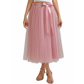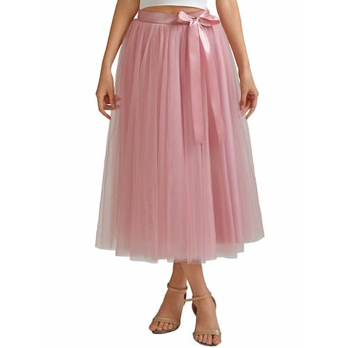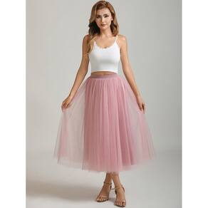 Saia Ai-Berlisha A Line, comprimento de chá, tule, rosa empoeirado para festa - Rosa - P-M