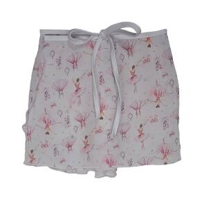 A Saia Transpassada Estampada Infantil é fabricado em tecido transpassado, muito leve.