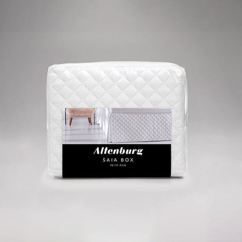 Design sofisticado: Esconda os pés do box e valorize a decoração do seu quarto com estilo.Proteção completa: Proteja seu colchão contra poeira, sujeira e desgaste, prolongando sua vida útil.Variedade incomparável: Encontre o modelo ideal para sua cama, com opções em diversos tamanhos, cores e estampas.Qualidade Altenburg: Confeccionada com materiais de alta qualidade, garante durabilidade, fácil cuidado e caimento impecável.Ao escolher a saia box ideal, considere os seguintes fatores:
