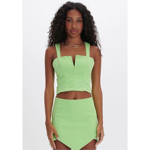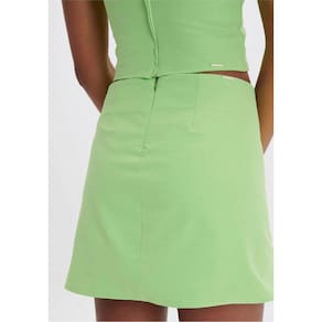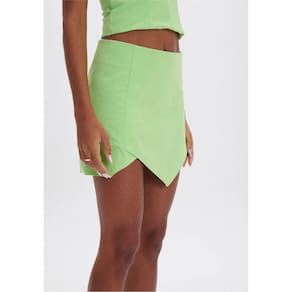 A saia curta com detalhes assimétricos é incrível para arrasar nas combinações. Seu caimento ajustado e fechamento por zíper conferem um toque fashion e versá