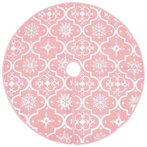 Esta elegante saia de árvore de Natal adiciona um toque de sofisticação à sua decoração festiva, com um tom rosa rico que realmente se destaca. Feito de tecido macio de poliéster, tem um lindo padrão de neve que adiciona elegância ao mesmo tempo que esconde o suporte da árvore para uma aparência arrumada durante as férias
