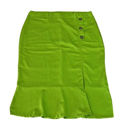 Saia Feminina Linho Longa Fenda Botões Babado Verde Plus size.
