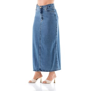 A saia maxi longa jeans é a escolha perfeita para quem ama unir conforto, estilo e versatilidade. Com modelagem reta e comprimento alongado, valoriza a silhueta e traz um toque sofisticado ao visual. Possui cintura alta, cós com passantes, bolsos funcionais e fechamento frontal com zíper e botão, garantindo praticidade no dia a dia.
