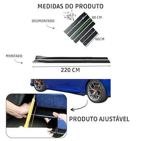Especificação:- Tipo: Saia lateral ajustável de 220 cm;- Formada por 3 peças cada lado;- Material: ABS;- Cor: Efeito Fibra de Carbono.