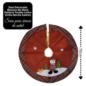 Finalize sua decoração natalina com elegância utilizando a saia para árvore de Natal modelo prime, confeccionada em tecido linho vinho com aplique de Boneco de neve em pelúcia e borda xadrez festiva, trazendo aconchego e sofisticação ao ambiente.