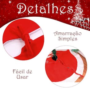 Transforme a base da sua árvore de Natal com um toque especial e encantador com essa saia de árvore. Medindo 90cm x 90cm, ela é o complemento perfeito para esconder os pés da árvore e elevar a decoração do seu ambiente com mais charme e espírito natalino. Confeccionada em poliéster macio, oferece durabilidade e leveza, mantendo um toque suave e delicado. O destaque fica por conta do bordado do Papai Noel, que traz um ar festivo e alegre, capturando a magia do Natal de forma única. Além de sua beleza, a saia é prática e fácil de usar, graças à sua amarração simples que permite um ajuste perfeito na base da árvore. Perfeita para quem deseja um Natal ainda mais acolhedor, harmonioso e cheio de estilo Marca: Klizz Marca: Klizz