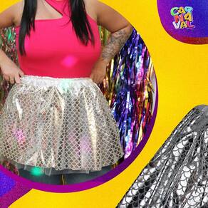 Destaque-se no Carnaval com a Saia Sereia Metalizada Silver Festa e brilhe como nunca!