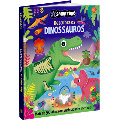 Descubra fatos divertidos debaixo de cada aba. Você conhecerá o incrível mundo pré-histórico!