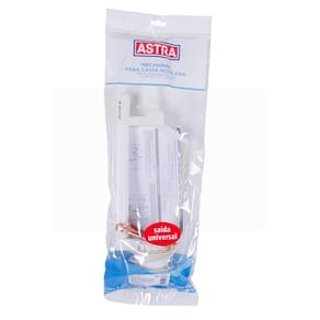 Saida Dagua Universal AstraDescrição:Torre de Saída Convencional Universal de mecanismo de descarga para louças de acionamento superior, lateral e alavanca.Características:- Universal, indicado para todas as alturas de caixa acoplada de 2".- Regulagem do volume da descarga através do obturador (conferir no vídeo abaixo).- Tubo extravasor de regulagem telescópica, para o modelo KSU.- Disponível com Castelo (MSU) para acionamento superior ou sem castelo (KSU) para acionamentos lateral externo/embutido e alavanca frontal. Informações Técnicas:Código: MSUAltura do tubo extravasor: Ajustável de 207 a 266 mmAcionamentos compatíveis:- MB- MB2- MB3- MB4- MB/M- MB/P- MB/E- MB2/ECódigo: 75041Marca: Astra