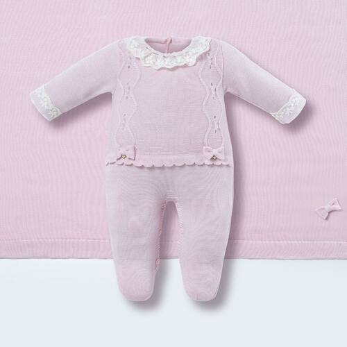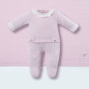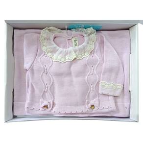 Saída de Maternidade Bebê Tricot Rosa Algodão Babados - Hug - RN - Rosa