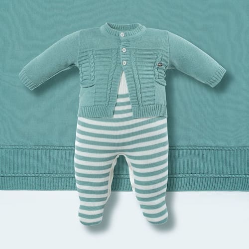 Saída de Maternidade Menino Macacão+ Manta Verde Listras-Hug - RN - Verde