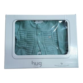 A Saída de Maternidade de Tricot da Hug é ideal para os primeiros dias do bebê. O conjunto inclui uma manta e um macacão com um lindo bordado na gola, ambos em tricot, embalados em uma caixinha personalizada, perfeita para presentear ou guardar de lembrança.