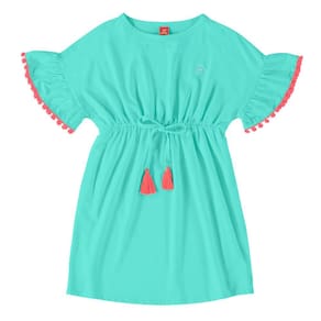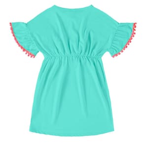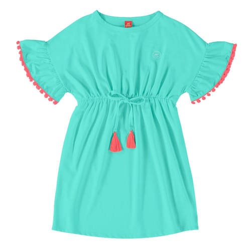 A saída de praia infantil Up Baby azul aruba é confeccionada em Malha Poliéster UV FPS +50, bloqueando em até 98% a entrada dos raios UVA e UVB. Com Tecnologia DRY secagem rápida, é antimicrobiana e hipoalergênica. O detalhe fica por conta dos grelôs nas mangas e pompons pink flúor na cintura.