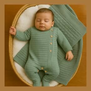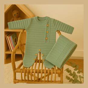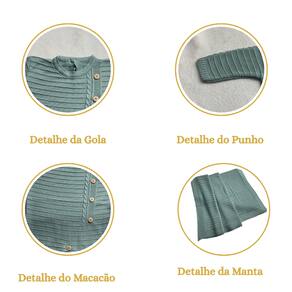O conjunto traz o toque aconchegante do tricot para vestir seu amor com muito estilo. A manta e o macacão são peças versáteis, Perfeito para presentear!