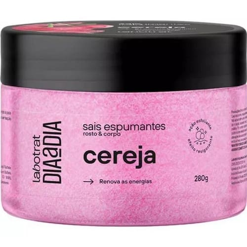 Os Sais Espumantes de Cereja Labotrat promovem uma esfoliação e limpeza profunda dos poros, deixando a pele macia e hidratada.