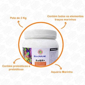2. O Sal Marinho Barrak Aquário contém todos os elementos traços marinhos? R: Sim, este sal é enriquecido com todos os oligoelementos conhecidos no aquarismo, garantindo o fornecimento adequado dos elementos traço ou microelementos essenciais para o desenvolvimento dos corais e peixes.