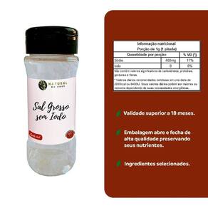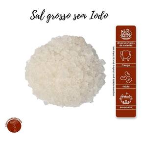O Sal Grosso Sem Iodo é o tradicional dos churrascos. Seus cristais grandes preservam as propriedades dos alimentos e evitam o ressecamento. Por não ser purificado como o refinado, possui mais cálcio, magnésio, potássio e selênio. É obtido através da evaporação da água do mar, porém não passa pelo processo de refinamento. O sal grosso é composto essencialmente por sódio.