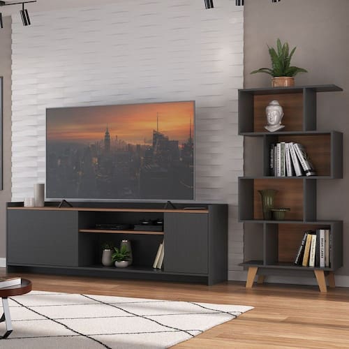 O(a) Sala de Estar Completa 2 Portas Grafite/Nogal Cj-041 - Hecol Móveis é produzido em MDP na escala de brilho Fosco, e possui um grau de dificuldade de montagem: Médio.