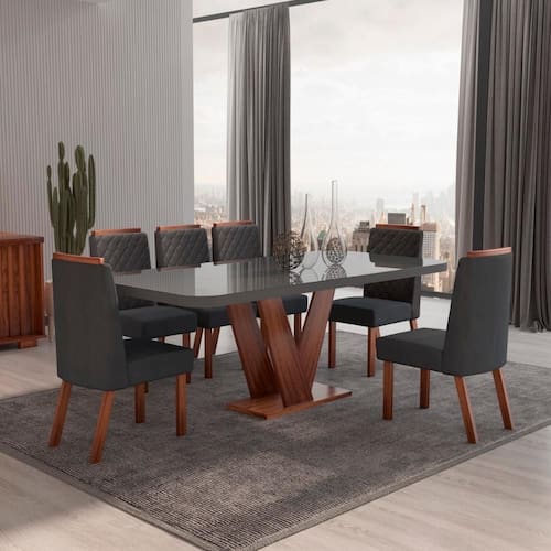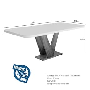 A Sala de Jantar Aurora 160x80 MDF/Vidro Grafite da Bom Pastor, contém no conjunto uma mesa de 1,60m x 80cm. Este conjunto é perfeito para refeições em família e reuniões com amigos. A mesa, fabricada 100% em MDF, oferece durabilidade e resistência, complementada por bordas em PVC super resistentes e um tampo de vidro de 4mm.