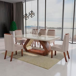 A Sala de Jantar 160x80 Lottus Tampo MDF/Vidro Bom Pastor com 6 Cadeiras combina sofisticação e funcionalidade. Produzido 100% em MDF, este conjunto é resistente e de alta qualidade, ideal para valorizar qualquer espaço.
