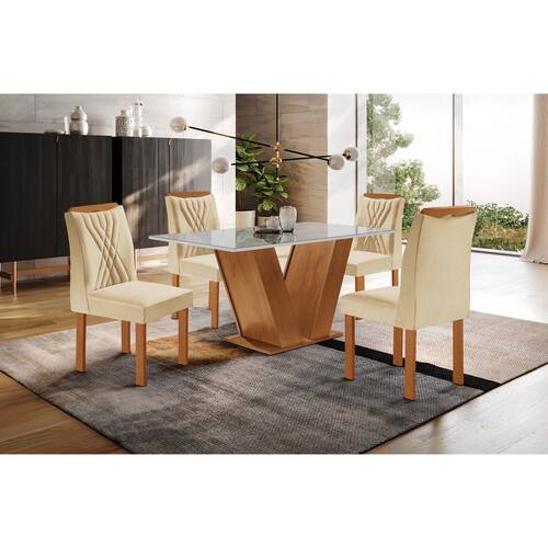 Sala de Jantar 4 Cad Vidro 1,2x0,8m - Paris - Sky Móveis - Off White | Cinamomo