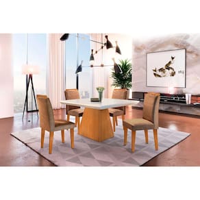 Sala de jantar Aida um produto 100 MDF, composto por peças de muito charme. É a opção perfeita para ambientes compactos que precisam de total aproveitamento do espaço. O Conjunto com 4 cadeiras garante uma usabilidade plena para o seu dia a dia, proporcionando um ambiente de conforto e praticidade.