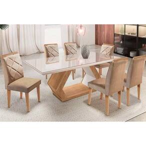 Mesa: Estrutura em MDF, Pés de Madeira, Vidro Serigrafado. Cadeira: Estrutura em MDF, Pés de Madeira, Forração em Tecido.Vendido e entregue por WebContinental