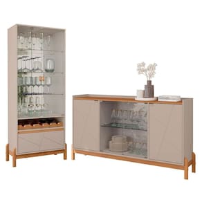 Sala de Jantar Bari com Cristaleira e Buffet Aparador - Casa D - Off White