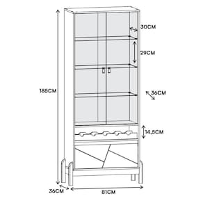 Tamanho da Cristaleira (L x A x P): 81 x 185 x 36 cm