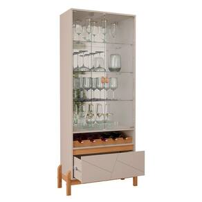 Buffet Aparador Bari 4 Portas - Casa D - Estrutura em MDP e MDF - Pintura UV - 2 Portas em MDF de 15mm - 2 Portas de vidro temperado de 4mm - Dobradiças soft-close - Puxadores de metal - Interna com prateleiras - Tampo e laterais em MDP de 15mm - Pés de madeira maciça