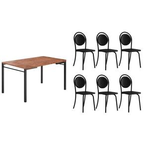Sala de Jantar Completa 1526 c/ Tampo Madeirado 160x90cm e 6 Cadeiras 1738 Preto/Corano Preto - Carraro
