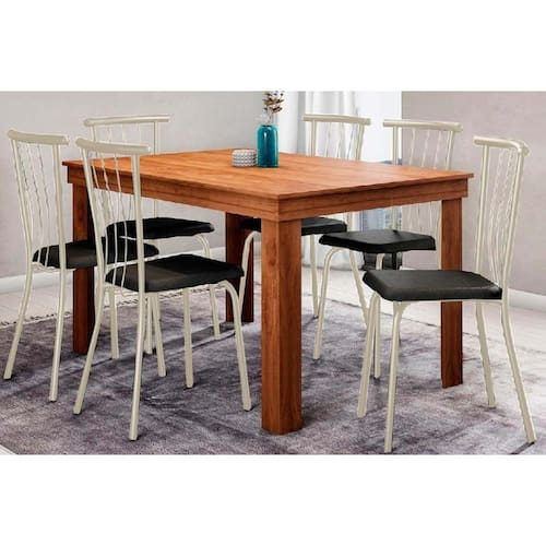 Sala de Jantar Completa 1543 c/ Tampo Madeirado 136x80cm e 6 Cadeiras 154 Prata/Corano Preto - Carraro Abaixo segue os produtos do KIT: Sala de Jantar Completa 1543 c/ Tampo Madeirado 136x80cm e 6 Cadeiras 154 Prata/Corano Preto - Carraro