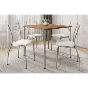 Sala de Jantar Completa 1545 Aço c/ Tampo Madeirado 87x87cm e 4 Cadeiras 1700 Prata/Freijo - Prata/Corano Branco - Carraro Abaixo segue os produtos do KIT: Sala de Jantar Completa 1545 Aço c/ Tampo Madeirado 87x87cm e 4 Cadeiras 1700 Prata/Freijo - Prata/Corano Branco - Carraro