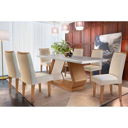 Sala De Jantar Completa Alvorada C/ Tampo Madeirado Canto Reto 180cm + 6 Cadeiras Lunara Imbuia/veludo Creme - Rufato