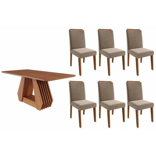 Sala de Jantar Completa Ágata Tampo Madeirado 180x90cm e 6 Cadeiras Clarice Cinamomo - Carvalho/Suede Joli Capuccino - Cimol Abaixo segue os produtos do KIT: Sala de Jantar Completa Ágata Tampo Madeirado 180x90cm e 6 Cadeiras Clarice Cinamomo - Carvalho/Suede Joli Capuccino - Cimol
