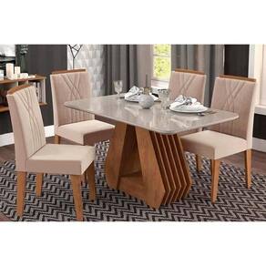 Sala De Jantar Completa ágata Tampo Madeirado C/ Vidro 130x80 Cm E 4 Cadeiras Nicole Savana-nature/off White -suede Nude Bege - Cimol