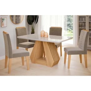 Abaixo segue os produtos do KIT: Sala de Jantar Completa Ágata Tampo Madeirado c/ Vidro 130x80cm e 4 Cadeiras Clarice Nature/Suede Joli Chocolate - Cimol