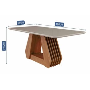 Mesa de Sala Jantar Ágata c/ Tampo Madeirado Vidro 180x90cm Cinamomo/Off White - Cimol