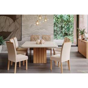 Cadeira Sala de Jantar Fernanda Madeira Kit 2 Un Madeira/Off White Suede/Nude - Cimol