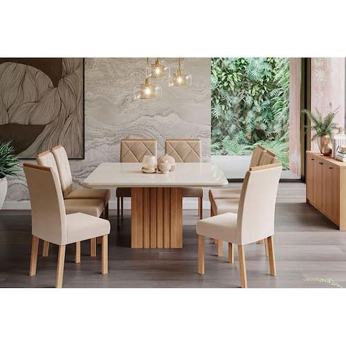 Sala de Jantar Completa Ana Tampo Madeirado c/ Vidro 130x130cm e 8 Cadeiras Fernanda Nature/OW/Nude - Cimol Abaixo segue os produtos do KIT: Sala de Jantar Completa Ana Tampo Madeirado c/ Vidro 130x130cm e 8 Cadeiras Fernanda Nature/OW/Nude - Cimol