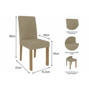 Dimensões(Cm): Comprimento(Profundidade): 41,5cm x Largura: 57cm x Altura: 98cm Material de Estrutura - Estrutura em MDF Estilo do Móvel - Tradicional Tipo de Pintura - UV Tipo de Acabamento da Pintura - Pintura Semi Brilho Materiais do Estofamento - Estofamento em Espuma Forração do Revestimento - Suede Tipo do Assento - Estofado Tipo de Encosto - Estofado Tipo dos Pés - Pés em MDF Quantidade de Pés - Móvel possui 4 pés Recomendações de Uso - Instruções de Cuidado Montagem do Produto - Desmontável - Necessita de Montagem - Necessita de Ferramentas para Realizar a Montagem Sistema de Montagem - Acompanha Manual de Instalação e Montagem Nossa Avaliação - Qualidade Muito Boa Certificação de Qualidade - Qualidade Aprovada Garantia - 3 meses