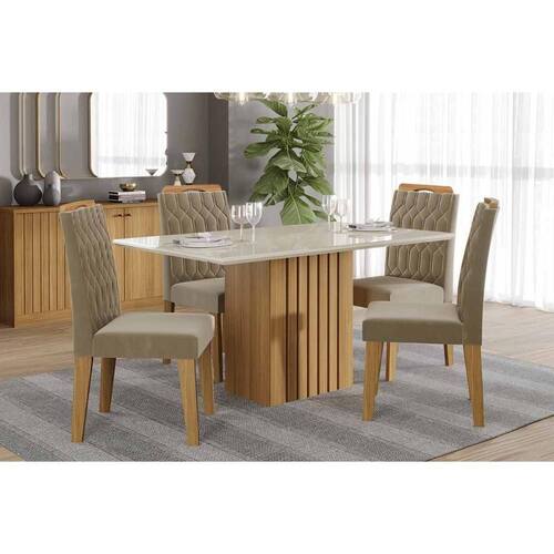 Sala de Jantar Completa Ana Tampo Madeirado c/ Vidro 130x80cm e 4 Cadeiras Paola Nature/Off White - Carvalho/Linho Bege - Cimol Abaixo segue os produtos do KIT: Sala de Jantar Completa Ana Tampo Madeirado c/ Vidro 130x80cm e 4 Cadeiras Paola Nature/Off White - Carvalho/Linho Bege - Cimol
