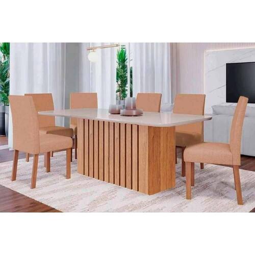 Sala de Jantar Completa Ana Tampo Madeirado c/ Vidro 180x90cm e 6 Cadeiras Maia Cinamomo/Off White - Nature/Suede Gengibre Bege - Cimol Abaixo segue os produtos do KIT: Sala de Jantar Completa Ana Tampo Madeirado c/ Vidro 180x90cm e 6 Cadeiras Maia Cinamomo/Off White - Nature/Suede Gengibre Bege - Cimol