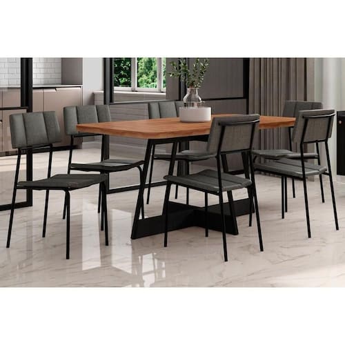 Sala De Jantar Completa átria 1592 Aço C/ Tampo Madeirado 160x90cm E 6 Cadeiras Lou Preto/nogal - Preto/grafite - Carraro