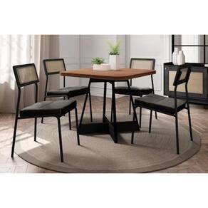 Sala De Jantar Completa átria 1593 Aço C/ Tampo Madeirado 90x90cm E 4 Cadeiras Lux Preto/nogal - Preto/grafite - Preto - Carraro
