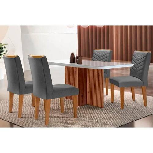 Sala De Jantar Completa Berlim C- Tampo Madeirado C- Vidro Canto Curvo 120x80cm E 4 Cadeiras Londrina Imbuia-off White - Linho Grafite - Rufato - Branco