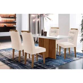 Sala de Jantar Completa Berlim c/ Tampo Madeirado Vidro Canto Curvo 120x80cm e 4 Cadeiras Imperatriz Imbuia/Off White - Suede Creme - Rufato