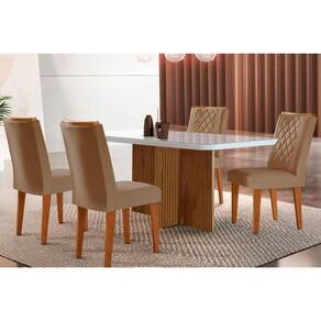 Sala de Jantar Completa Berlim c/ Tampo Madeirado Vidro Canto Curvo 120x80cm e 4 Cadeiras Jade Imbuia/Off White - Suede Capuccino - Rufato