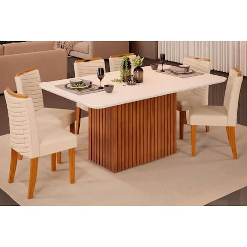 Sala de Jantar Completa Canes Tampo Madeirado c/ Vidro Curvo 170x90cm e 6 Cadeiras Julia Freijo/Off White - Linho Neve - DJ Móveis Abaixo segue os produtos do KIT: Sala de Jantar Completa Canes Tampo Madeirado c/ Vidro Curvo 170x90cm e 6 Cadeiras Julia Freijo/Off White - Linho Neve - DJ Móveis Mesa de Sala Jantar Canes c/ Tampo Madeirado c/ Vidro Curvo 170x90cm Freijó/Off White - DJ Móveis